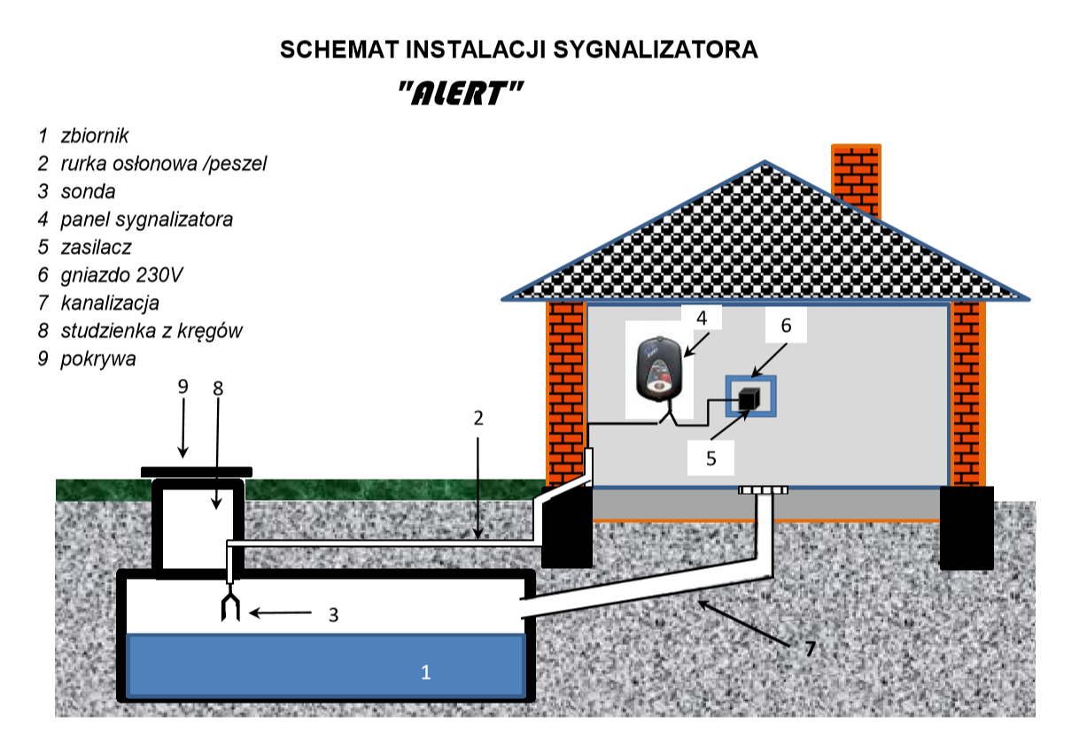 - Dowolna odległość zbiornika od miejsca zainstalowania panelu sygnalizacyjnego